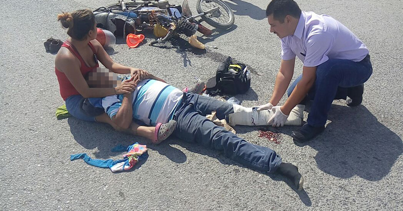 Circulaba en sentido contrario sobre Prolongación Praxedis Balboa y a la altura de la colonia Azteca choca de frente con una Cherokee. Sufrió fractura expuesta de pierna izquierda