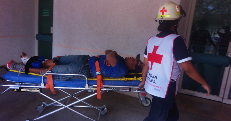 Albañil andaba colocando más tubulares de la base donde se encontraba pero para su mala suerte pierde equilibrio y se rompe una pierna