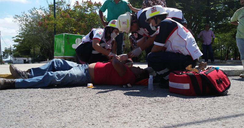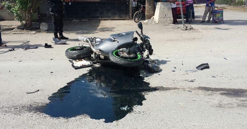 Comerciante no respeta el alto obligatorio y a bordo de motocicleta es embestido por una camioneta repartidora de carnes frías cuyo chofer iba a su casa por el lonche