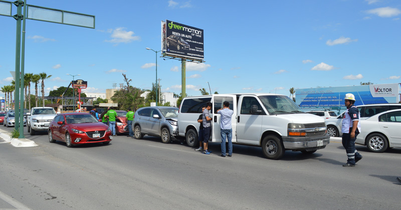Empleados provenían de la ciudad de Monterrey y en la avenida Tamaulipas tienen el percance vial. Cruz Roja atendió a ocho personas que salieron golpeadas