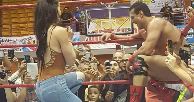 La diva de la WWE de 24 años subió al ring y sé arrodilló frente a su ahora prometido