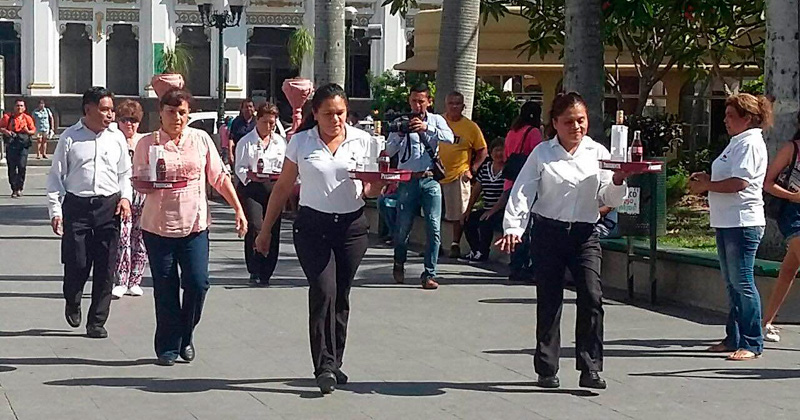 Realizan carrera de meseros en la Plaza de Armas en Tampico