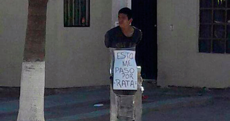 El joven fue atado, con cinta adhesiva, a un poste y le colocaron un cartel con la leyenda: “Esto me pasó por ratero”.