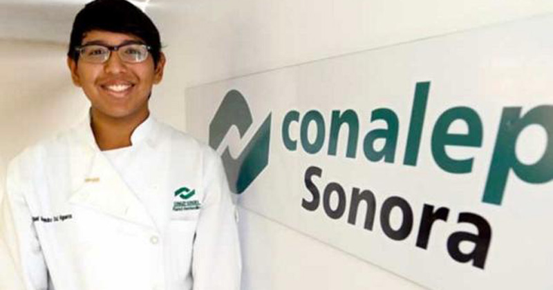 l alumno del plantel Hermosillo 1 del Conalep, resultó ganador del primer lugar en la categoría de Receta, en el Concurso de Comida Tradicional Mexicana