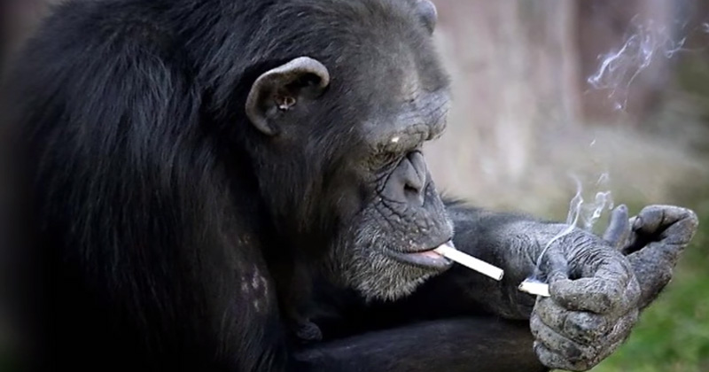 Genera polémica imagen de chimpancé que fuma (VIDEO)