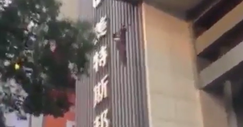 Cae de edificio, policías tratan salvarla con una tabla (Video)