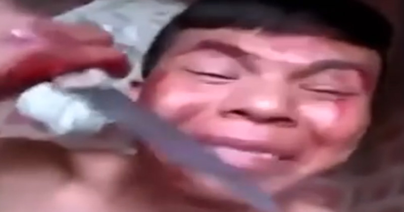 Con cuchillo en mano, el hombre filmó un video en el que se le ve herido y cubierto de sangre