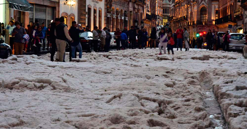 La lluvia y granizada comenzó después de las 18:00 horas y vistió de blanco los municipios de Zacatecas y Guadalupe