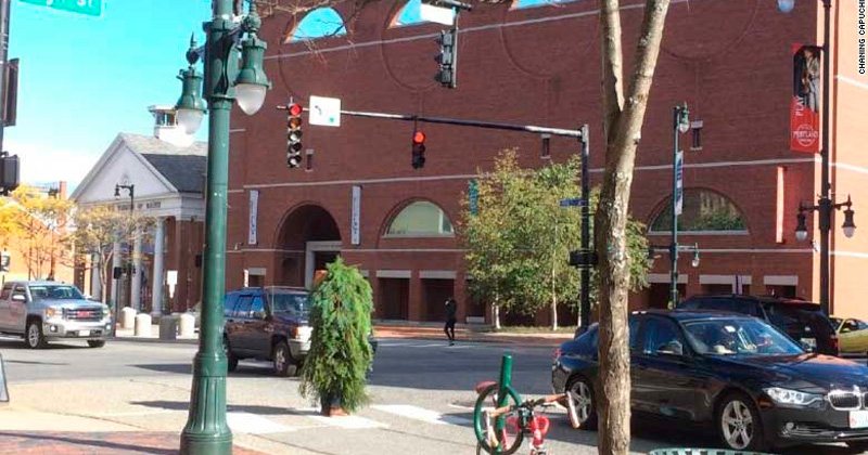Bueno, en realidad no se trataba de un árbol, sino de un hombre disfrazado que estaba bloqueando el paso vehicular