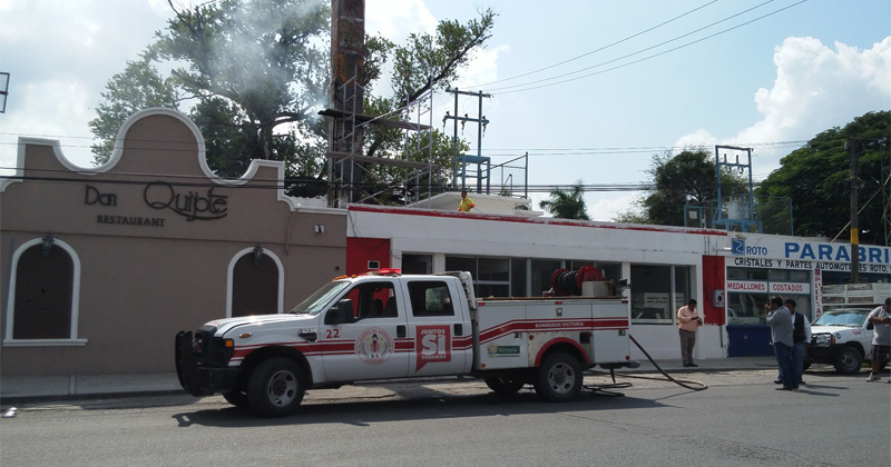 Empleados de una pollería andaban quitando la chimenea pero al usar el soplete sobrevino una lengua de fuego grande que por poco y los quema