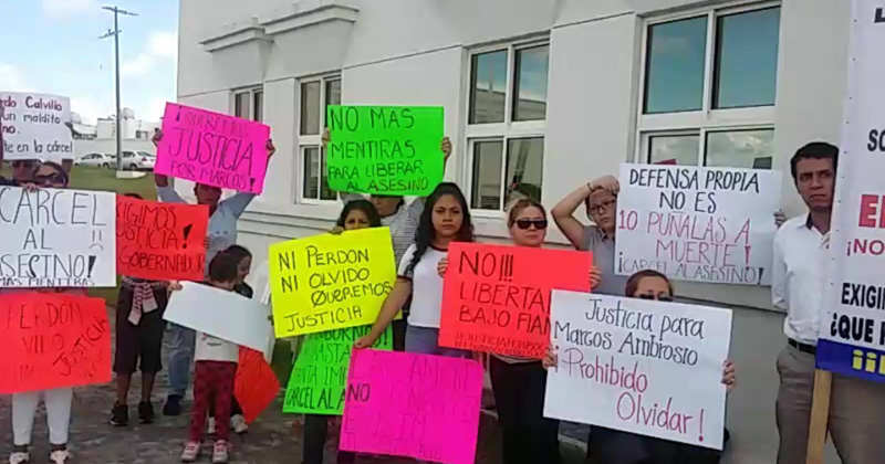 El padre de la víctima acompañado de 30 personas pide justicia para su hijo que fue asesinado con saña con 9 puñaladas