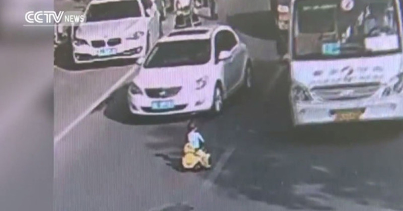 Un video de seguridad muestra al pequeño que sin supervisión adulta se lanzó a la calle, corriendo el riesgo de morir atropellado