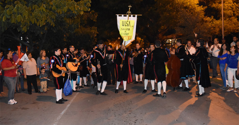 A través de una “callejoneada”, la Estudiantina de la Universidad La Salle México en conjunto con la sede local, pusieron a cantar y bailar a los asistentes al Libre 17