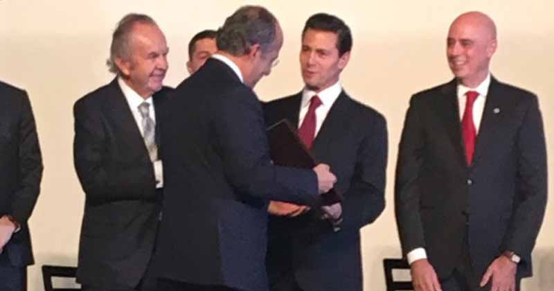 Peña Nieto le entrega reconocimiento a Felipe Calderón