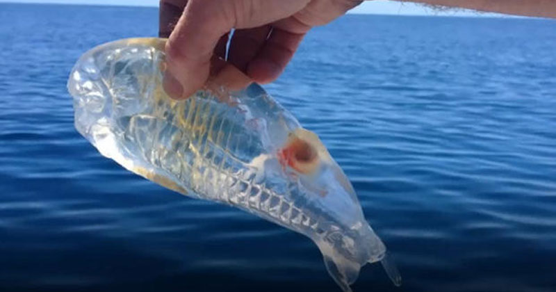 Este organismo ‘fantasma’ se desplaza gracias a sus duras bandas musculares, que se contraen para bombear agua a través de su cuerpo y le permiten mantener su forma fuera del mar.