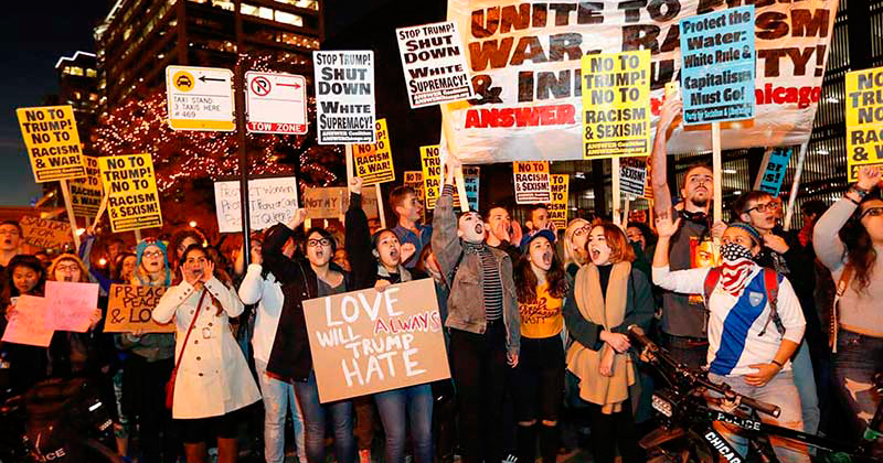 En Chicago, Nueva York, Texas y Los Ángeles, entre otros, enormes multitudes salieron a manifestarse en contra del triunfo del presidente electo Donald Trump