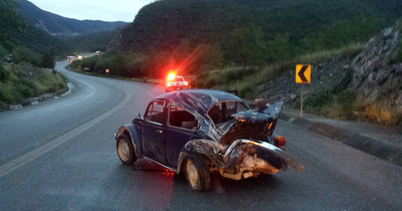 El camionero pierde el control debido a la velocidad y el pavimento resbaladizo. Se va atravesado toda la carretera hasta golpear el coche compacto donde viajaba un empleado y su mamá