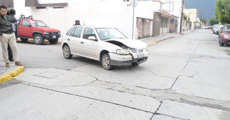 Conductor de sedán compacto no hace el alto en un peligroso cruce y causa el impacto. Los daños se estimaron en los 20 mil pesos