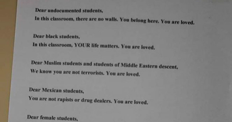 Después del resultado electoral en Estados Unidos, miles de personas han reportado ataques racistas, por lo que una maestra decidió dar tranquilidad a sus alumnos