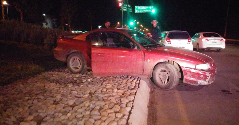 Señora e hija son chocadas por una camioneta y ante la fuerza, mandan el coche en que se desplazaban a la rotonda que hay en el libramiento Naciones Unidas y bulevar Tamaulipas