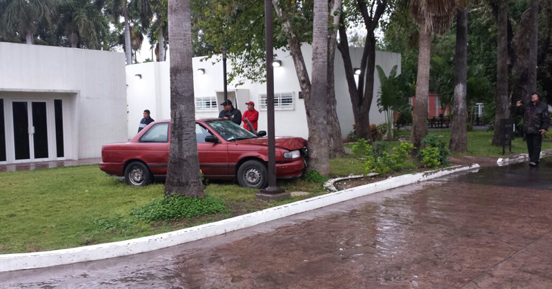 Policía choca con palmera de plaza Mendez