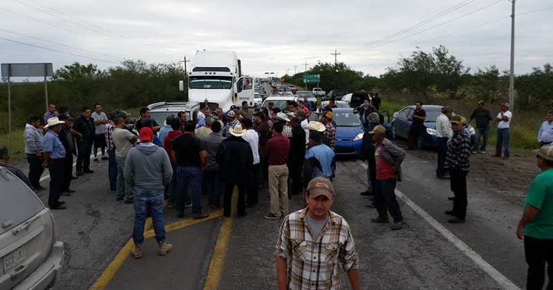 SAN FERNANDO, Tamaulipas.- Campesinos que se encuentran indignados por no recibir aun el pago de la compensación a las bases e ingreso objetivo, correspondiente al ciclo agrícola 2015-2016, conocido como temprano, bloquearon por espacio de media hora en su totalidad la carretera federal Matamoros-Victoria a la altura del punto conocido como el puente “Las Barreras”, para posteriormente dialogar con autoridades federales y retener solamente unidades de carga y transporte foráneo, dejando libre el paso a vehículos ligeros.