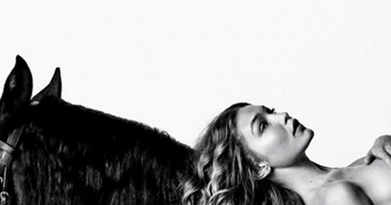 Gigi Hadid se quita la ropa sobre un caballo