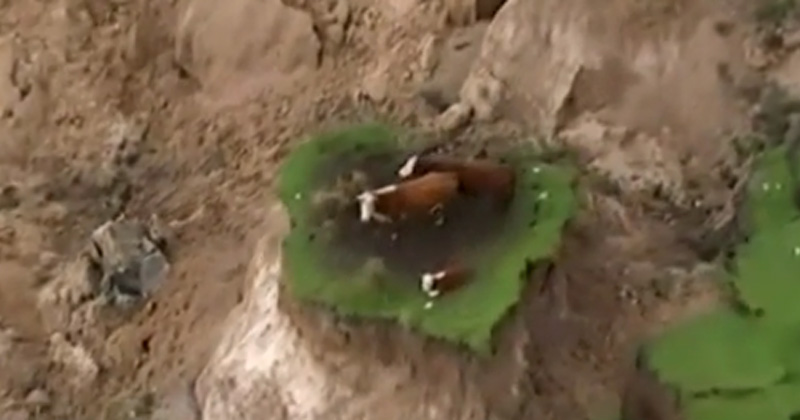 Tras el terremoto 3 vacas quedaron aisladas (Video)