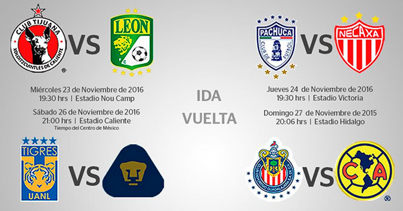 Miércoles y jueves se efectuarán los partidos de ida mientras que sábado y domingo se definirá a los semifinalistas del Apertura 2016