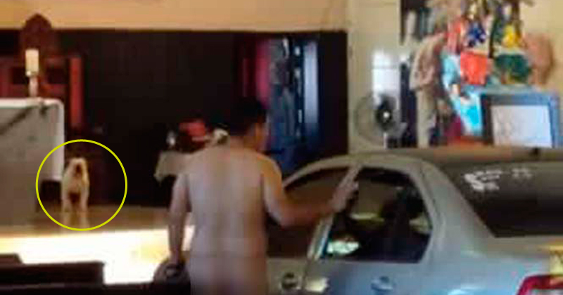 Acompañado de su mascota un hombre entró a la Parroquia de la Divina Providencia, ubicada entre las calles Bucerías y Playa Novillero, luego de la celebración de una boda