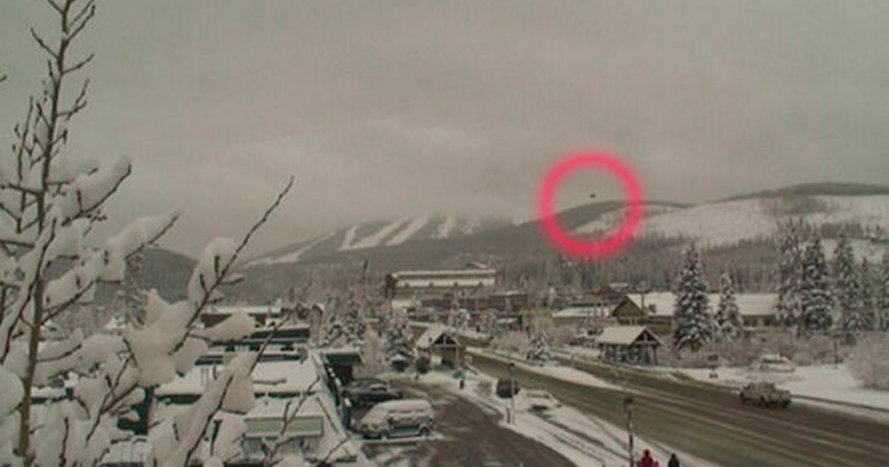 Una cámara de seguridad de un centro para esquiar ubicado en Colorado, capturó la imagen de un extraño objeto sobrevolando el lugar