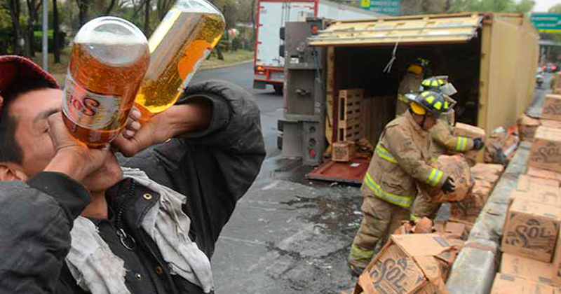 Vuelca remolque con cervezas