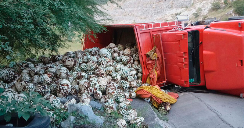 Transportaba 20 toneladas pero en una curva el peso y la velocidad, hicieron que se saliera del camino y quedara recostado. Se dirigía a Michoacán