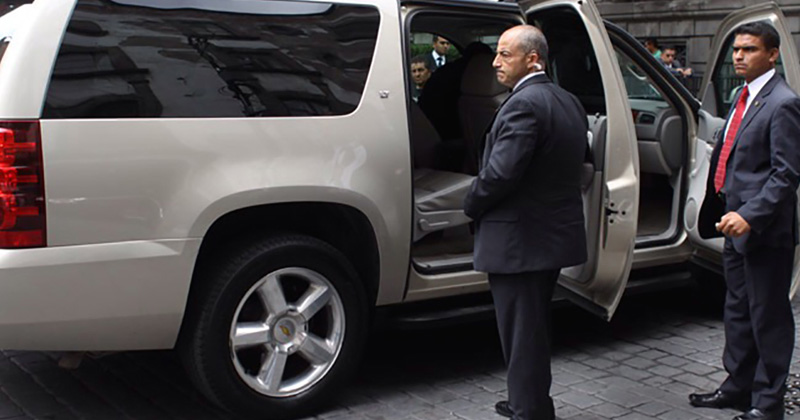 También utiliza un equipo de seguridad, así como una camioneta blindada.
