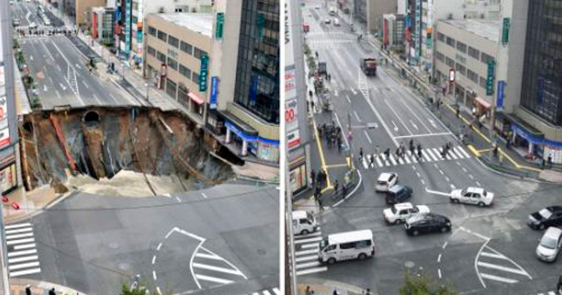 Agujero reparado en Japón vuelve a presentar hundimientos