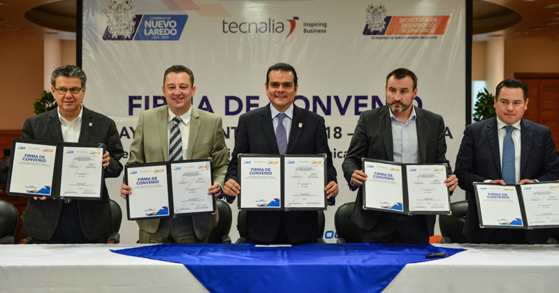 NUEVO LAREDO, Tamaulipas.-El Gobierno Municipal y TECNALIA realizaron la firma del convenio para la conceptualización y puesta en marcha del Centro de Innovación Socioeconómica y Tecnológica, el cual lanza a Nuevo Laredo a la vanguardia como agente impulsor del desarrollo tecnológico.