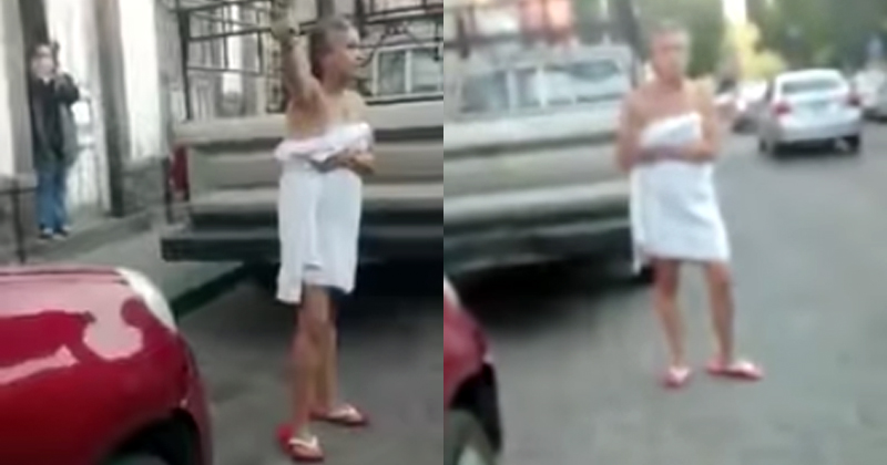 Una funcionaria de SLP arremetió contra los uniformados por… hacer su trabajo, sin importarle que estaba envuelta en una toalla