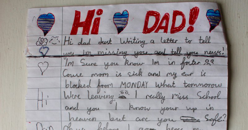 Niño le escribe carta a su papá que esta en el cielo
