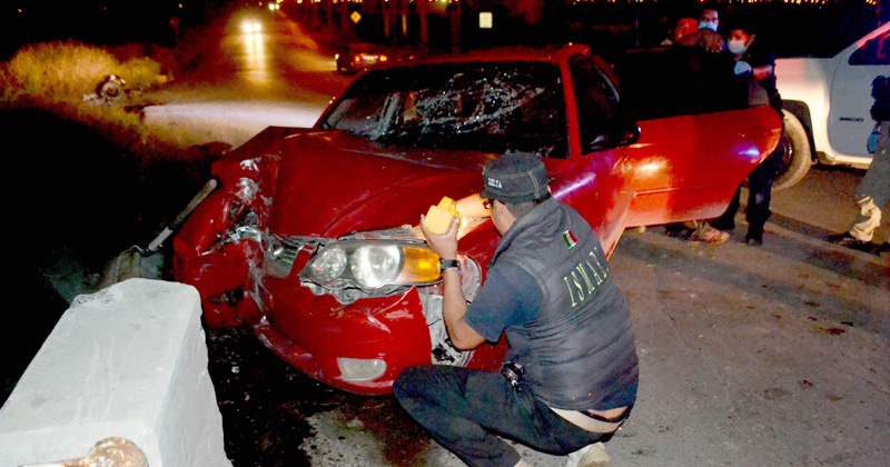 Albañil andaba en estado de ebriedad y a alta velocidad, perdió el control de la unidad y acabó estampado en el puente de concreto de la avenida Marte R. Gómez