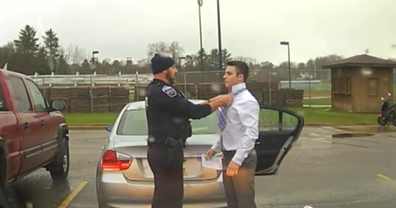 Policía detiene a conductor y termina haciéndole el nudo de la corbata (Video)