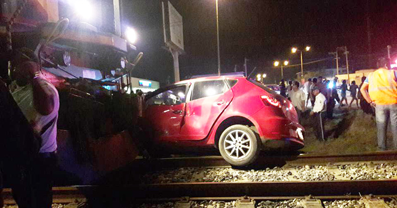 Luego de que su conductora tratara de ganarle el paso a la mole de hierro, resultando gravemente lesionada