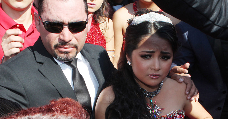 Rubí pasó de la emoción a la tristeza durante la celebración de sus quince años, al menos eso reflejaba su rostro, pues fue constantemente asediada por la prensa y los miles de asistentes al festejo