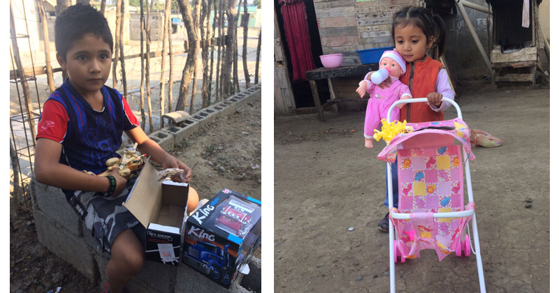 Sus padres se emocionaron con sus hijos y abrieron junto con ellos los regalos que los lectores de Expreso hicieron llegar para ayudar a Santa Clos