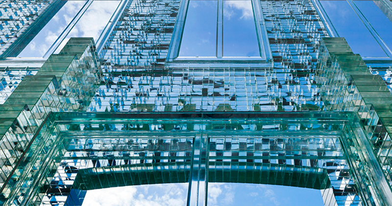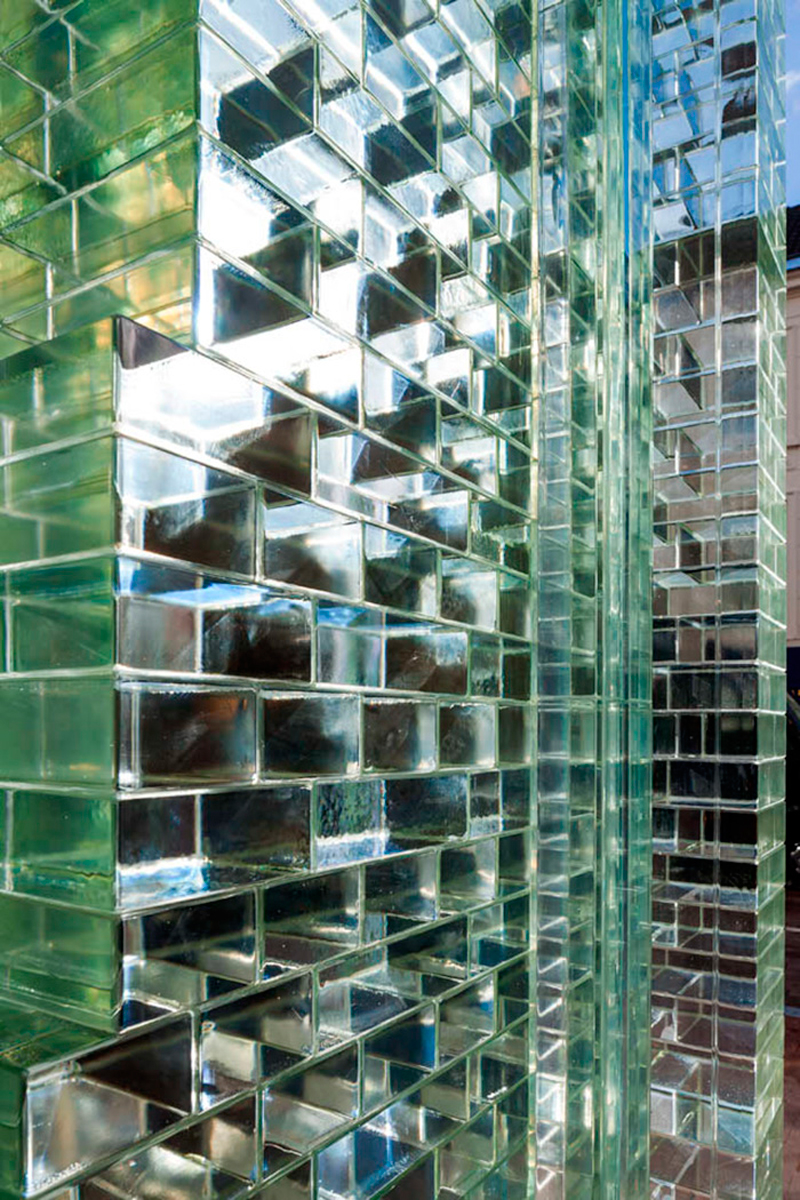 Los ladrillos de vidrio se mantienen en su lugar con un adhesivo transparente de alta resistencia y de acuerdo con MVRDV, la fachada es » de muchas maneras, más fuerte que el concreto «, una declaración apoyada por el extenso proceso de pruebas antes de la construcción.