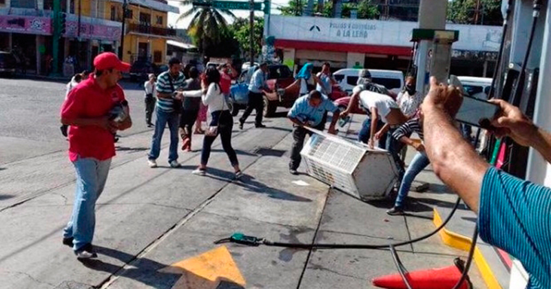 Tras vandalizar el establecimiento los inconformes regalaron gasolina y aceite al público en general en Tapachula