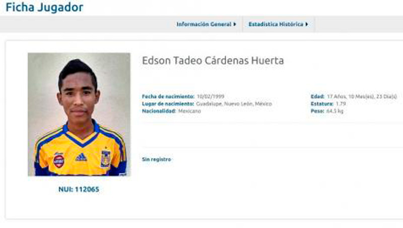 CIUDAD DE MÉXICO.- Esta mañana Club Tigres emitió un comunicado a través de sus redes sociales en el que lamentó el fallecimiento del jugador Edson Tadeo Cárdenas Huerta de la Tercera División Profesional.