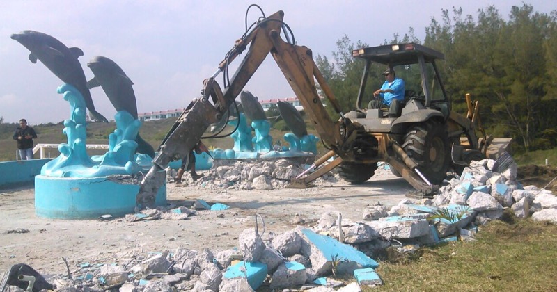 Dieron inicio a la demolición de la glorieta de los delfines para cambiar su imagen