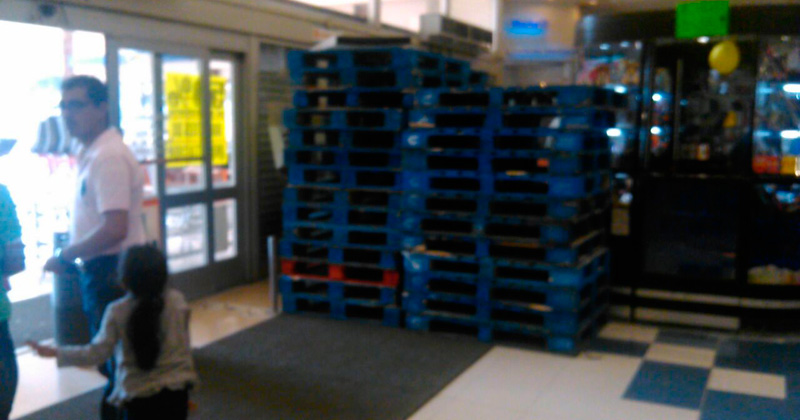 ALTAMIRA, Tamaulipas.- Por temor a que se registren saqueos, tiendas como Soriana se preparan con tarimas para colocar barricadas en caso de ser necesario.