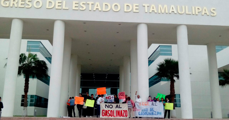 CIUDAD VICTORIA, Tamaulipas.- Un grupo de 30 personas, entre ellas regidores, periodistas y civiles, acudieron al Congreso del Estado para realizar protesta contra el gasolinazo, los cuales entablaron diálogo con Carlos García González, presidente de la Junta de Coordinación Política, y líder de la fracción parlamentaria del Partido Acción Nacional (PAN).