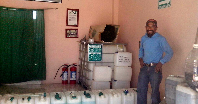 El litro cuesta 14 pesos y se produce a base de caña. Vende también en Tlaxcala y Morelos